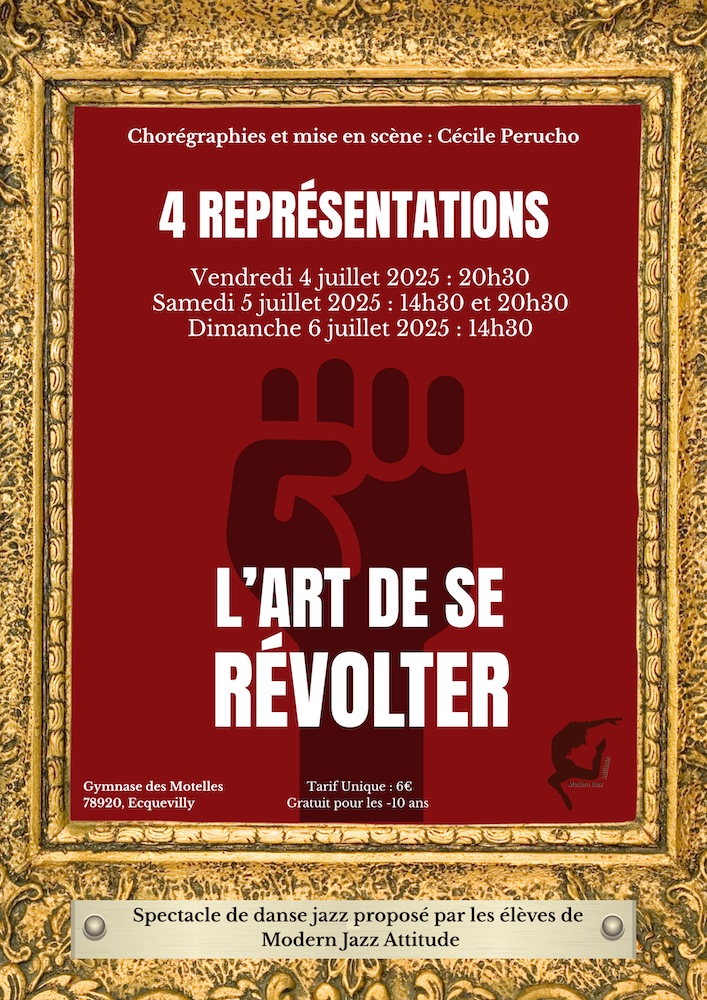 Un grand merci à la municipalité et aux services municipaux pour leur soutien lors de l’événement et l’activité de l’association Modern jazz Attitude tout au long de l’année. « L’art de se révolter » a réuni un public de 717 personnes (public très enthousiaste !) sur les 4 représentations de juillet 2025. Nos 148 danseurs et danseuses ont donné le maximum, et ils ont été très encouragés, dans l’ambiance hyper festive du gymnase/théâtre des Motelles, surchauffé par les projecteurs, les applaudissements des spectateurs… et la météo.